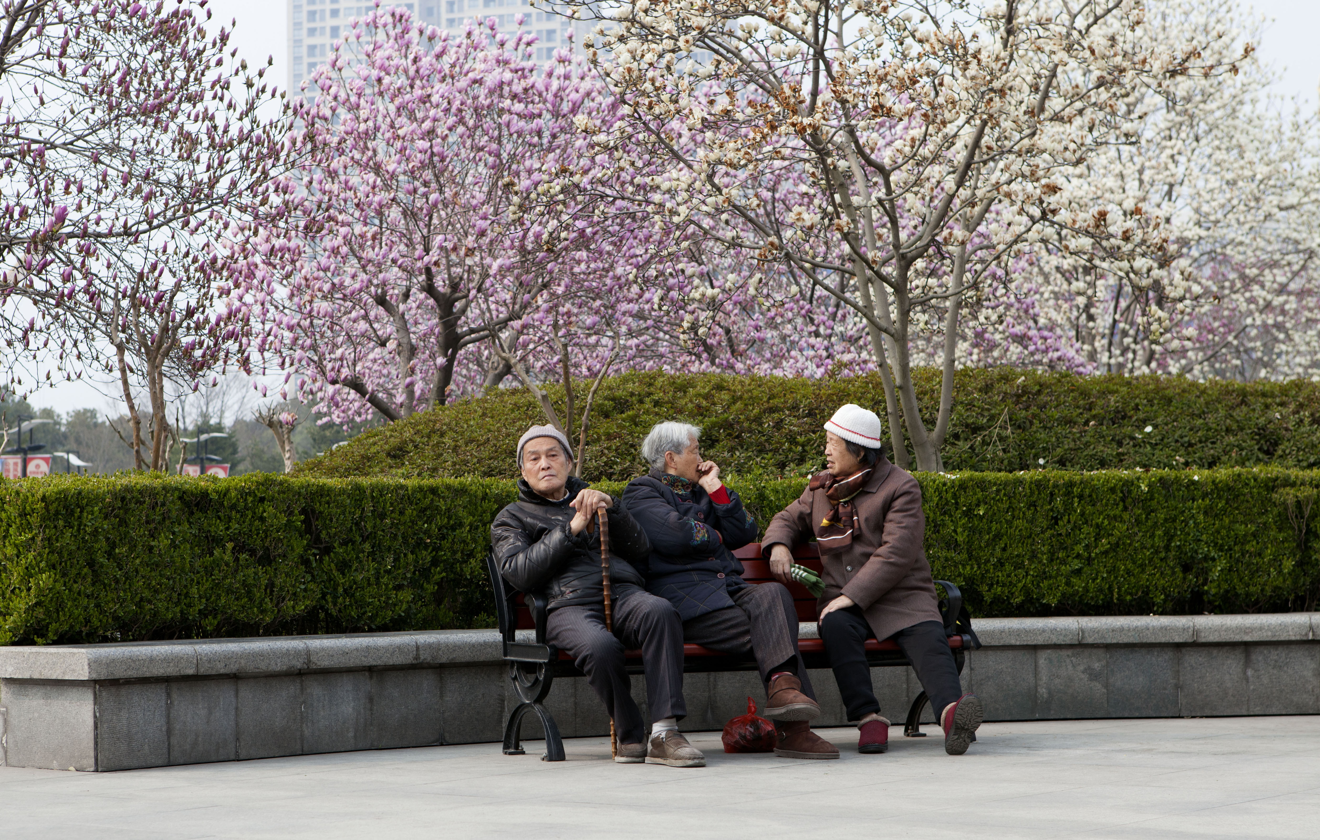 此片拍之2016年3月14日的江苏省丹阳市市民广场。广场位于丹阳的市中心,是居民休闲、运动、玩乐的重要场地。初春的广场,繁花竞开,尤其是硕大的广玉兰花每天都吸引着大批市民前来观赏。一个傍晚我在拍摄花景的时候,抓拍了这三位老人花下聊天的画面。长凳上的老人、将过花期的广玉兰、组成了这幅:夕阳花语。