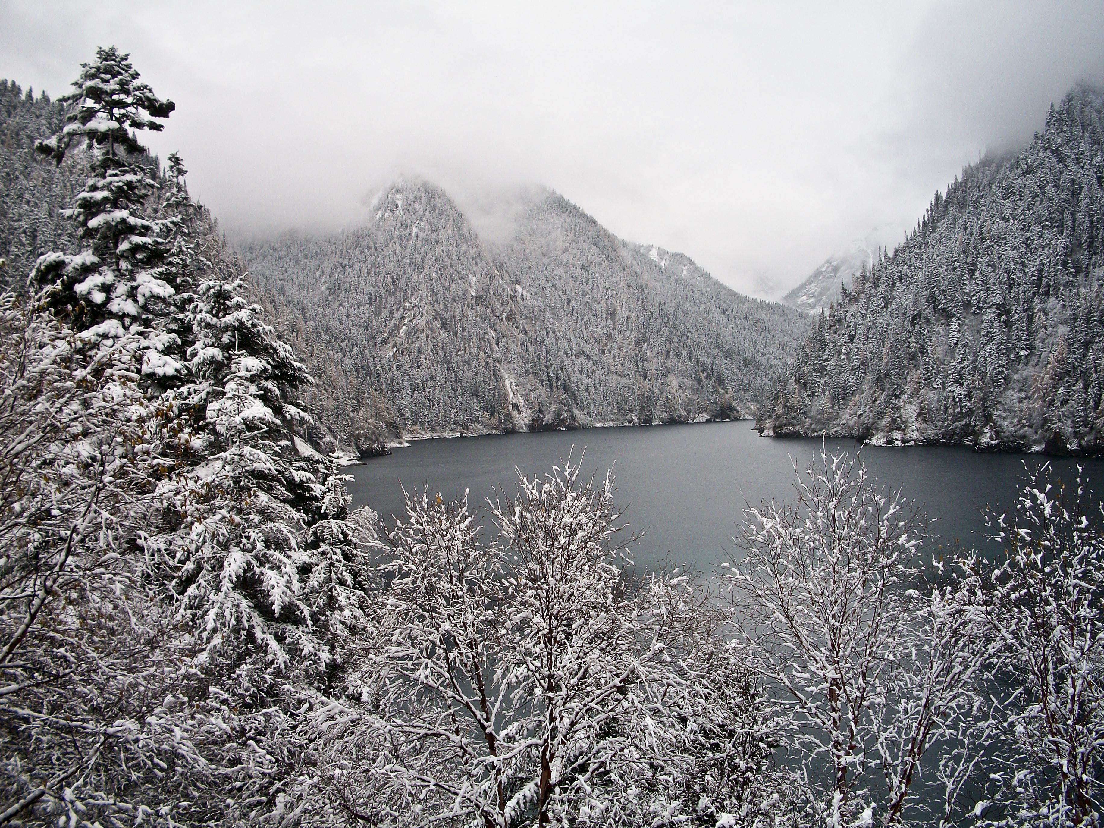 图片介绍:远处黑云压山,近处却呈现一静谧小湖,任大雪覆盖,它波澜不惊,平静如镜。