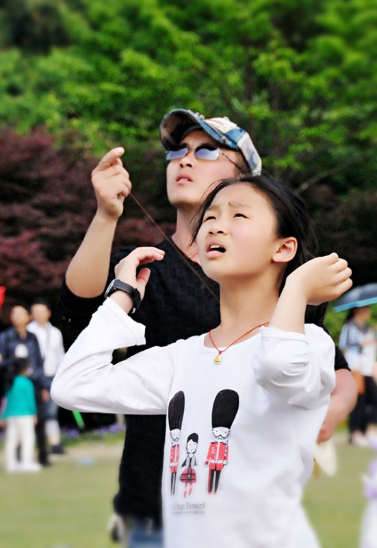图片介绍:一对父女专注看往风筝飘飞的方向,在父亲的殷切期望中,无论飞得多高多远,父亲依然牵紧手中的线!