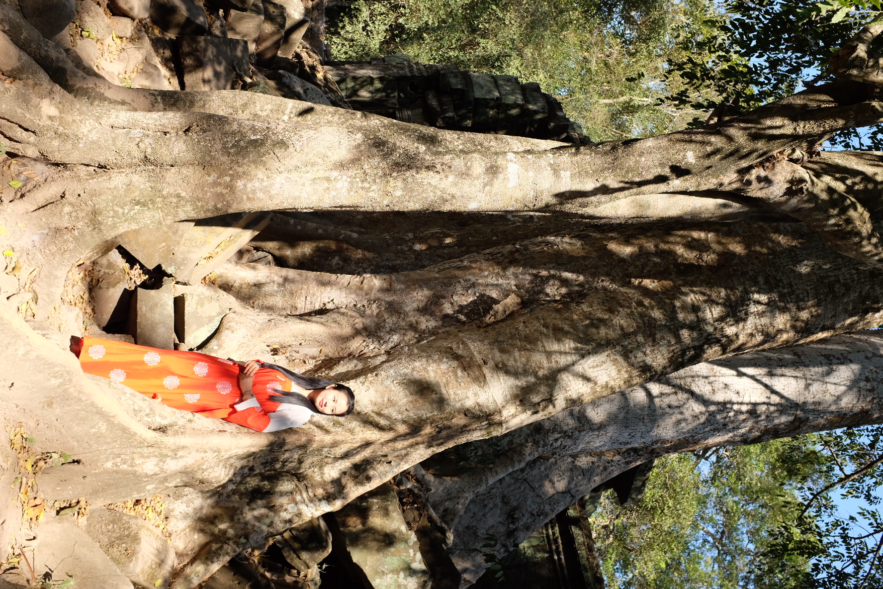 作品介绍:在柬埔寨的历史文化中,在百年的古树下,穿着中国传统的服饰的女孩等候夕阳