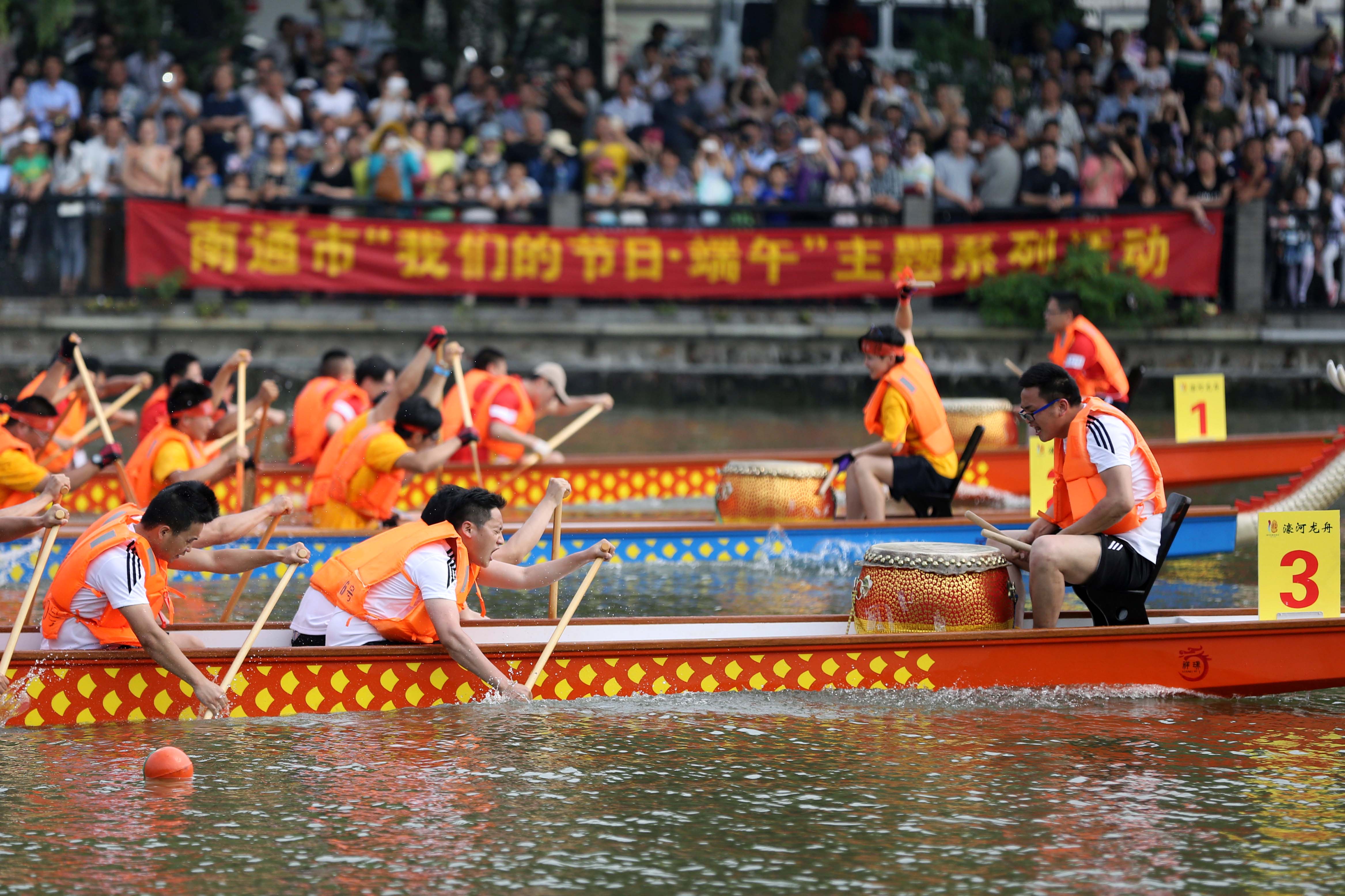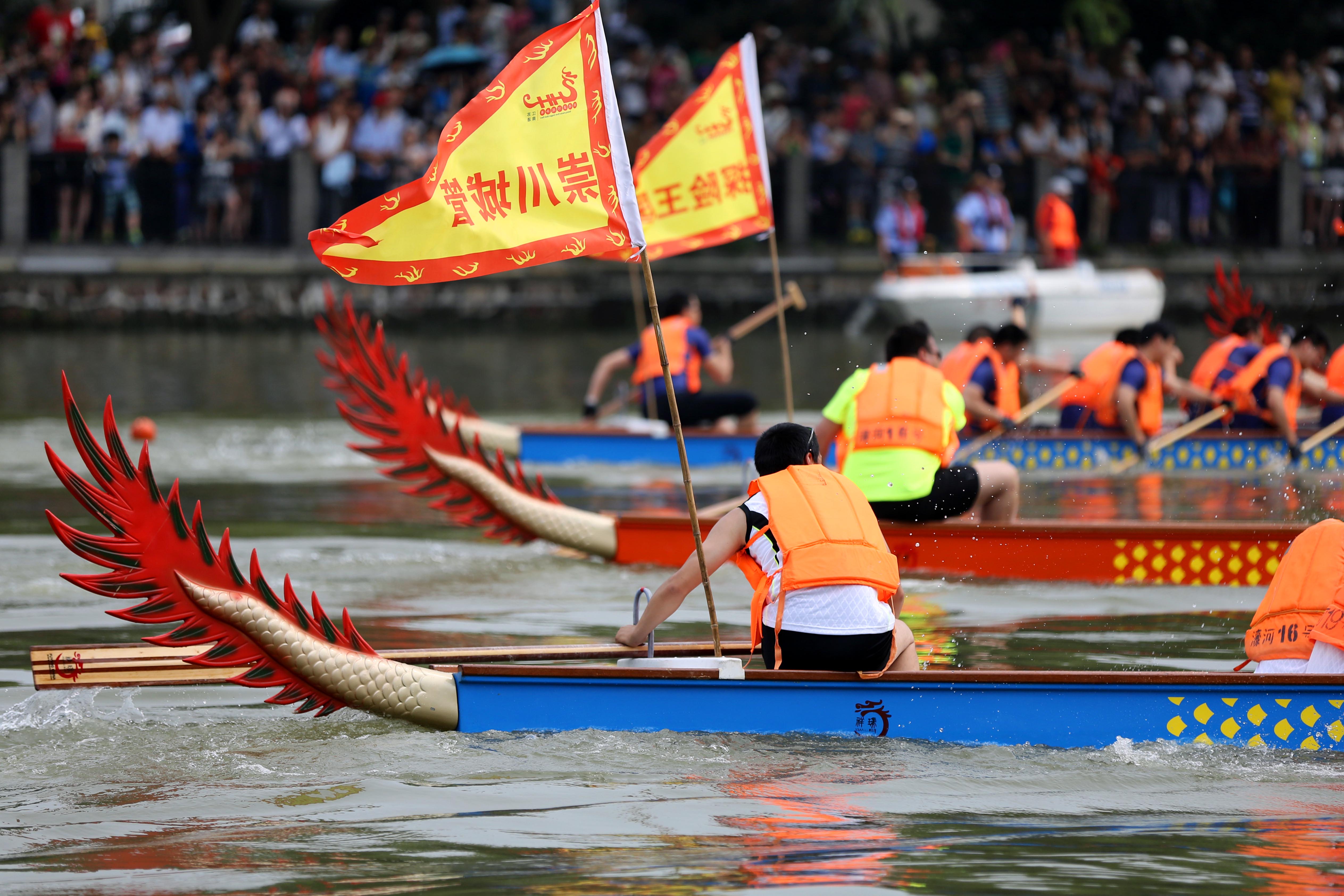 图片简介:每年农历五月初五是中国传统节日端午节,在这一天除了吃粽子、喝雄黄酒、挂菖蒲、戴香包等习俗外,不少地方还会举办热闹非凡的龙舟大赛。为了倡导全民健身运动,弘扬江海民俗文化,2015年6月20日,南通市第二届濠河龙舟大赛火热开战。随着开赛的枪声响起,龙舟伴随着阵阵有节奏的鼓声冲出起点。选手们手握划桨,有节奏地快速划破水面,劈波斩浪,相竞争先。队旗迎风飘扬,河面上水花飞舞,包裹着龙舟如离弦之箭般一往无前。岸上的群众围了里三层外三层,发出阵阵欢呼和呐喊。一时间,濠河上鼓声、加油声此起彼伏,不绝于耳,壮观的场面震撼人心。