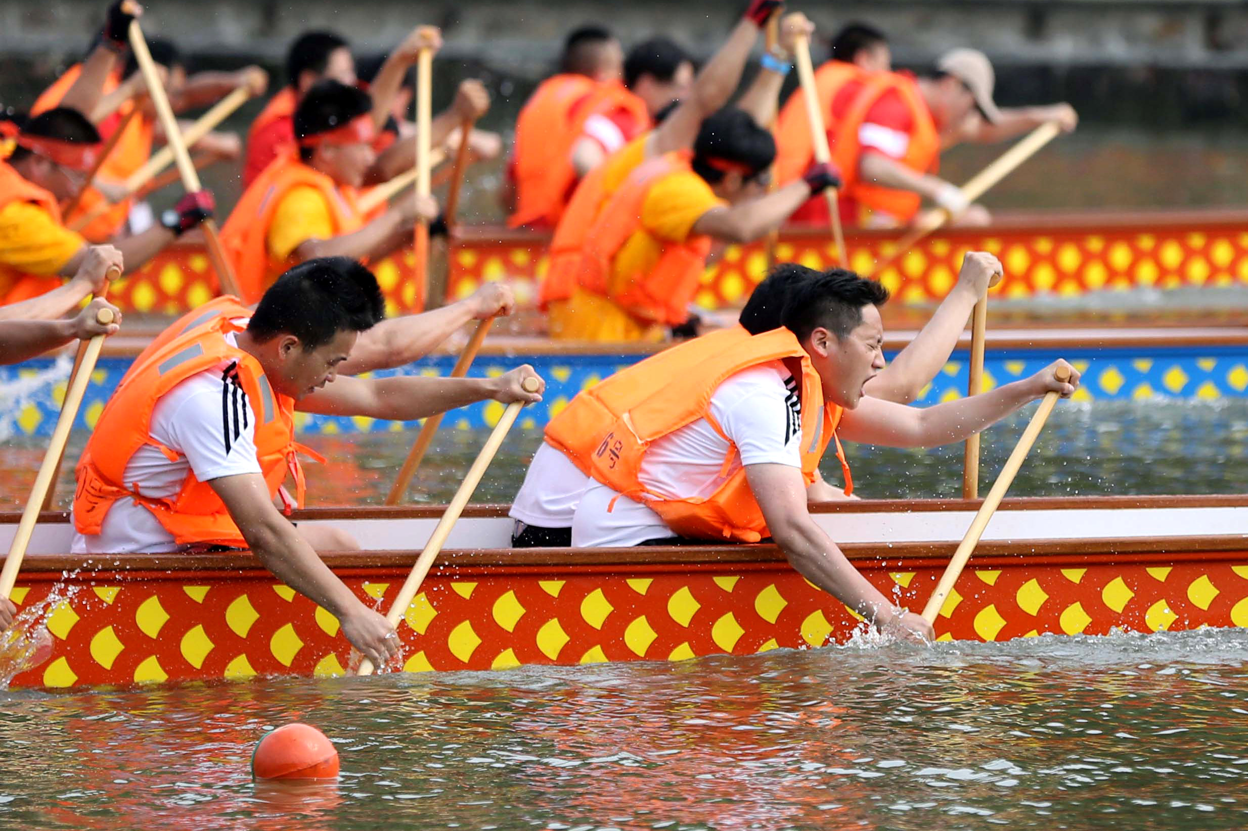 图片简介:每年农历五月初五是中国传统节日端午节,在这一天除了吃粽子、喝雄黄酒、挂菖蒲、戴香包等习俗外,不少地方还会举办热闹非凡的龙舟大赛。为了倡导全民健身运动,弘扬江海民俗文化,2015年6月20日,南通市第二届濠河龙舟大赛火热开战。随着开赛的枪声响起,龙舟伴随着阵阵有节奏的鼓声冲出起点。选手们手握划桨,有节奏地快速划破水面,劈波斩浪,相竞争先。队旗迎风飘扬,河面上水花飞舞,包裹着龙舟如离弦之箭般一往无前。岸上的群众围了里三层外三层,发出阵阵欢呼和呐喊。一时间,濠河上鼓声、加油声此起彼伏,不绝于耳,壮观的场面震撼人心。