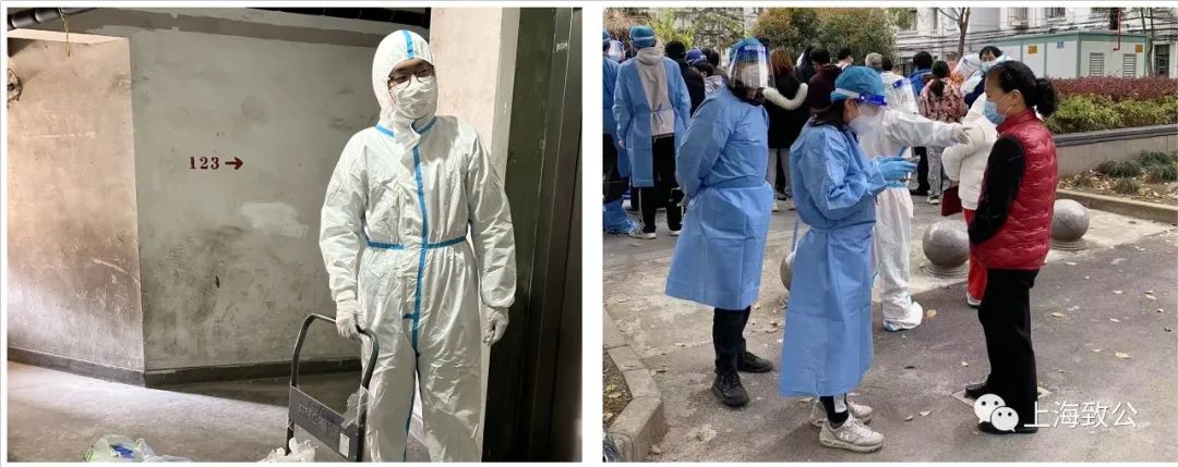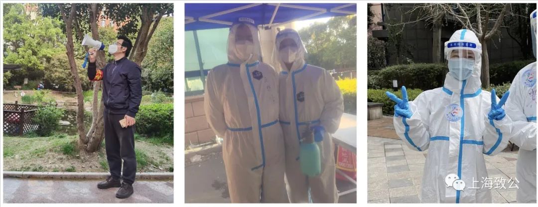 还有部分机关干部主动加入小区志愿者队伍,募资出力,尽展所长,积极为抗疫工作注入源源不断的能量。致公党上海市委会办公室的王再平,参政议政部的邵岗(上左图)、王祥锋(上中图左)、沈凡(上右图),组织部的石章超(下左图)参与各自社区的核酸采样服务、抗原检测试剂的分发收集、社区物资搬运、社区环境消杀等工作。致公党上海市委会办公室的刘一林(下右图前排中)、巩尊雷除了做好社区的志愿服务工作,在居住楼栋封控期间,牵头组织做好封控户的垃圾清运和楼道消杀工作,还自己动手制作《社区楼栋环境消杀指引》,获得业主群、志愿者群纷纷点赞。