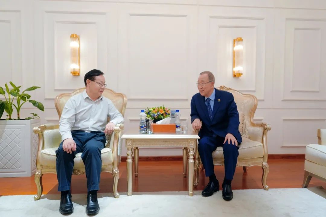 在埃塞俄比亚转机期间,代表团偶遇联合国前秘书长潘基文,应对方邀请,在我驻埃塞俄比亚公使等陪同下,蒋作君与潘基文进行了简短交流。