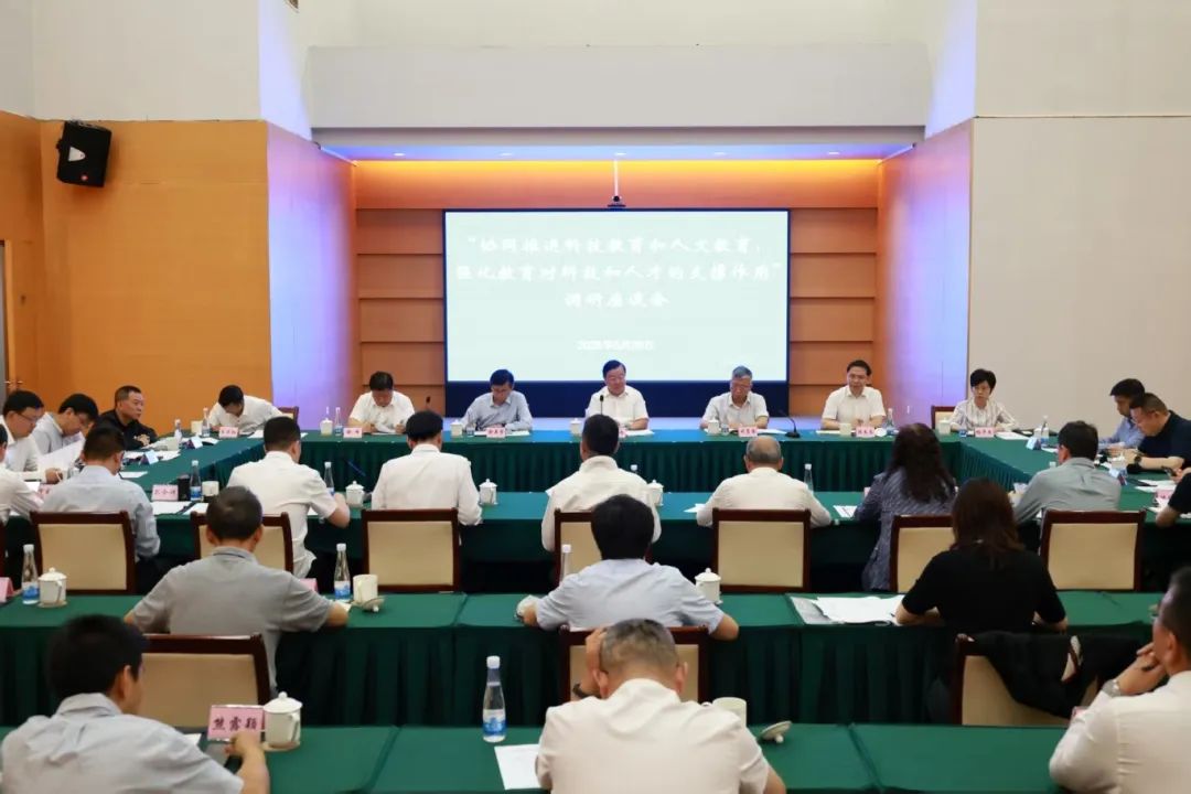 曹鸿鸣对相关单位对致公党中央调研组工作的支持表示感谢。他指出,中共二十届三中全会全面部署统筹推进教育科技人才体制机制一体改革,明确提出“强化科技教育和人文教育协同”的具体要求。科技为人文赋能,人文为科技铸魂,科技教育与人文教育是现代教育的重要组成部分,共同为中国式现代化提供有力的人才支撑。他强调,要提高政治站位,深刻认识协同推进科技教育和人文教育的战略意义,站在推进强国建设和中华民族伟大复兴的高度上,正确理解强化科技教育和人文教育协同,实现教育、科技、人才一体化发展内涵实质;要聚焦关键问题,精准把握协同推进科技教育和人文教育的关键痛点,透过问题看本质,找准切入点,深刻分析问题根源,提出有针对性的对策建议;要深化改革,协同推进科技教育和人文教育的新范式,围绕强化顶层制度设计构建协同育人长效机制,重构课程教学体系推动科技与人文教育深度融合,进一步加强师资能力建设培育复合型教师队伍,深入研究和积极探索协同推进科技教育与人文教育、强化教育对科技和人才的支撑作用的发展路径。
