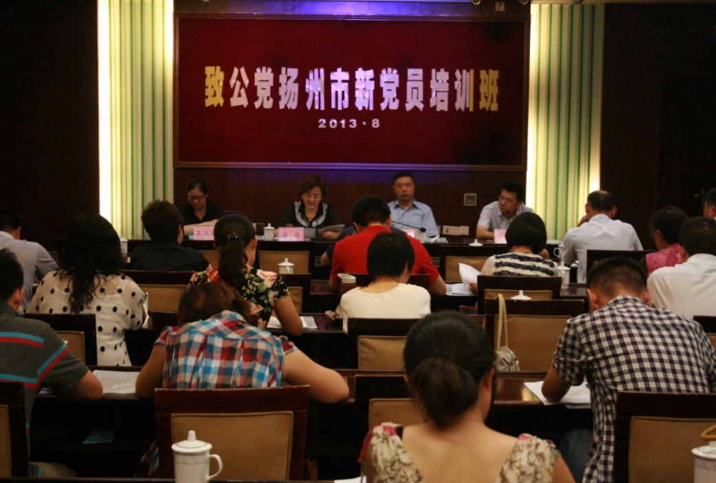 8月上旬,由学习宣传专委会主办的致公党扬州市新党员培训班在扬州大学瘦西湖校区虹桥专家楼举行。致公党江苏省委副主委、扬州市委主委高瑛,中共扬州市委统战部常务副部长李明安出席开班典礼并作讲话,致公党扬州市委副主委张仁田、王兰海出席培训班,培训班由致公党扬州市学习宣传专委会主任、邗江区副区长丁明哲主持,40余名新党员参加了培训。