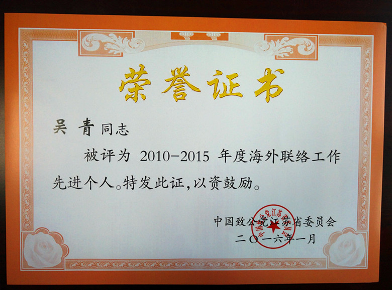 九、致公党江苏省委2010-2015年度海外联络先进个人