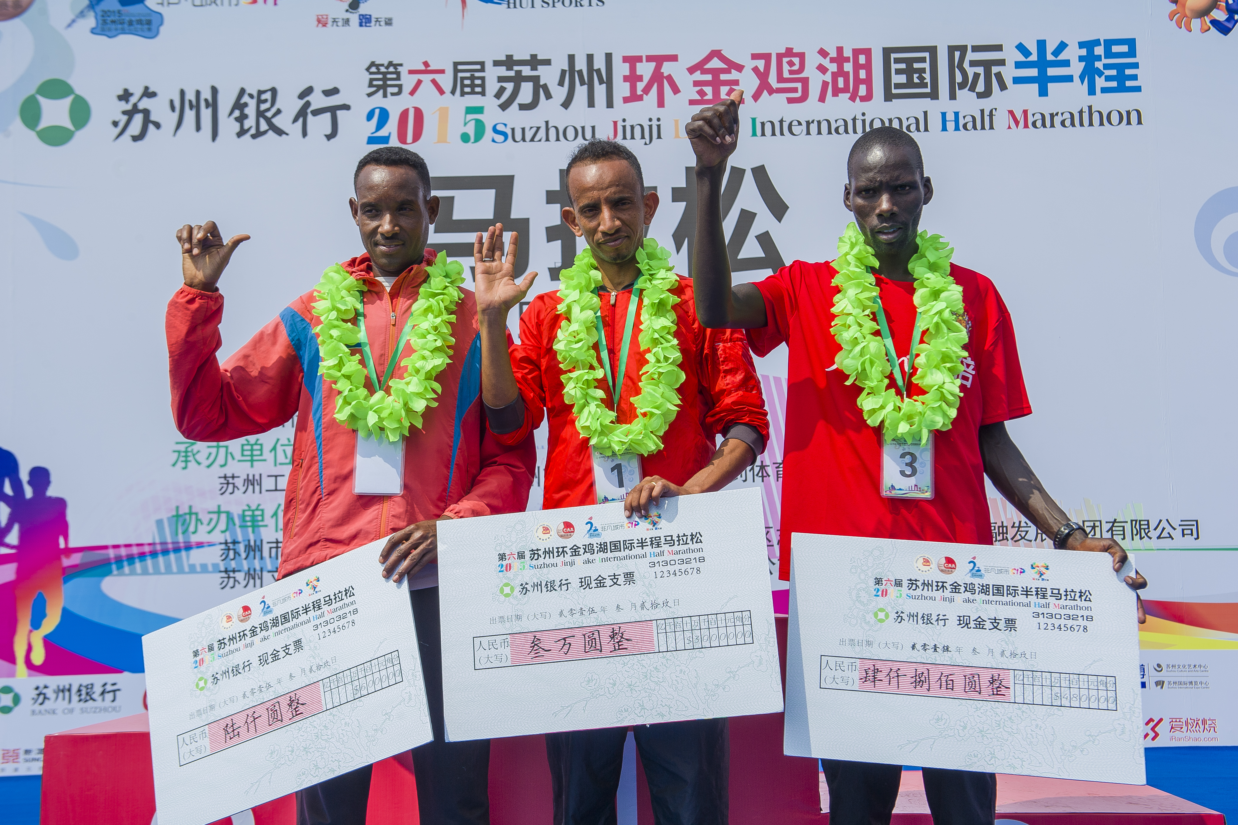 2015年3月29日,2015年金鸡湖半程马拉松比赛举行。各方选手云集赛场,重在参与的体育精神鼓舞着他们。虽然奖项各有得主,可贵的是选手们成功的挑战自己。赛场的意外惊喜,一对结缘于赛场的情侣,在赛后举办了赛场婚礼!