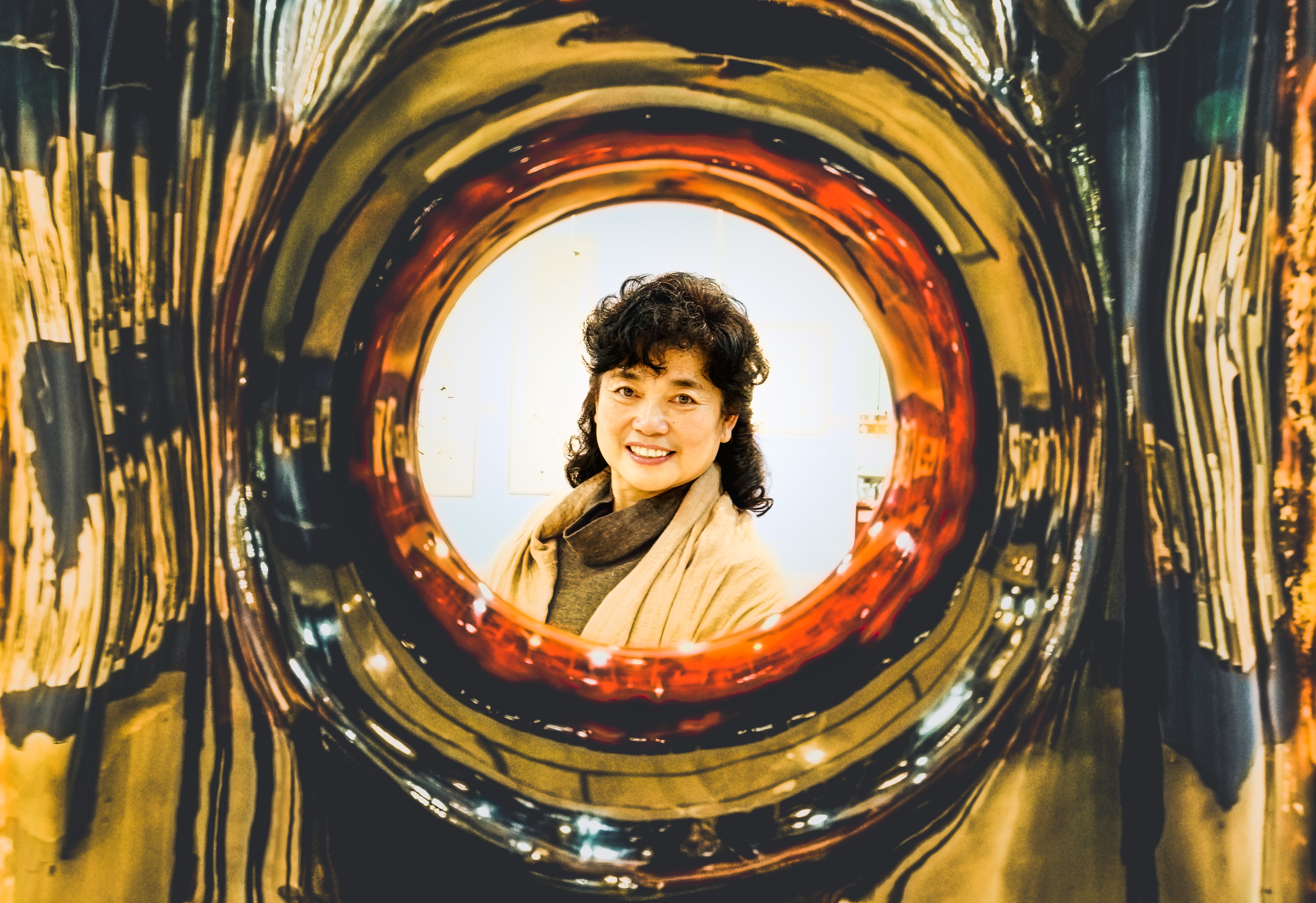图片介绍:致公党中央书法绘画展中一个艺术品的中央,为扬州市委艺委会孙云同志留影