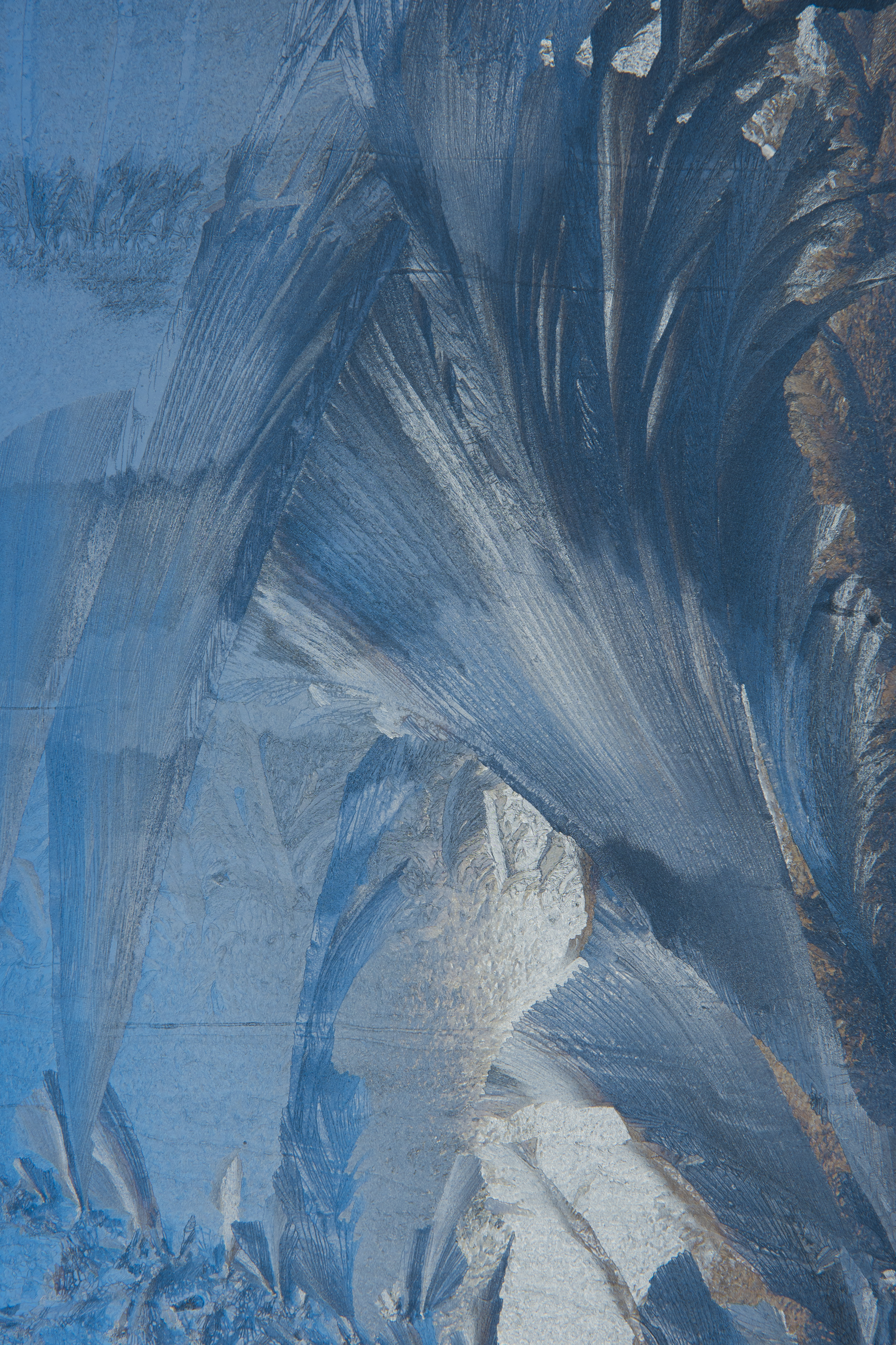 图片介绍:冬天室内、外的温差较大,当屋内空气中的水蒸气接触到冰冷的玻璃时,就会在玻璃上结成冰晶。,形成冰窗花。冰窗花的形状与室内的温度、湿度以及玻璃的光滑程度(灰尘)有关。如果室内湿度大,温度偏低,水汽结晶快,窗上的图案清晰,就容易形成树枝形状的冰窗花;反之则容易形成碎片状、扇状的;玻璃面粗糙或者尘埃多的地方,冰窗花的图案就会厚一些;玻璃面光滑,冰花图案就会薄一些。因此,就产生了千姿百态的冰花的形状。窗花,让我们眼前一亮,给我们展现了大自然的又一神奇,让我忍不住拍下这窗花美景,感受这创造出的神奇。