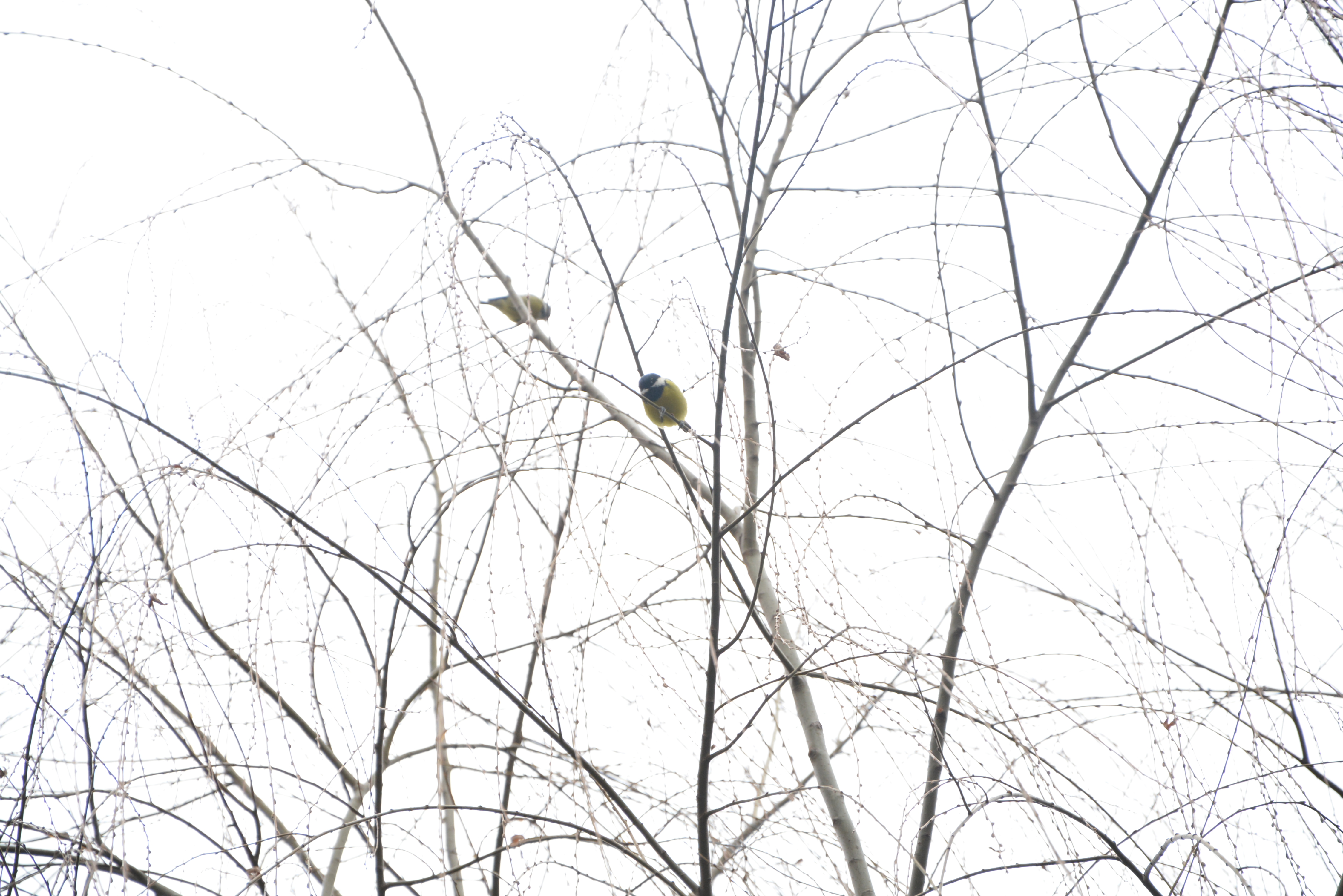 图片介绍:以灰色天空为背景,一对小鸟栖息在寥寥枝条上,构成强烈的白描效果。