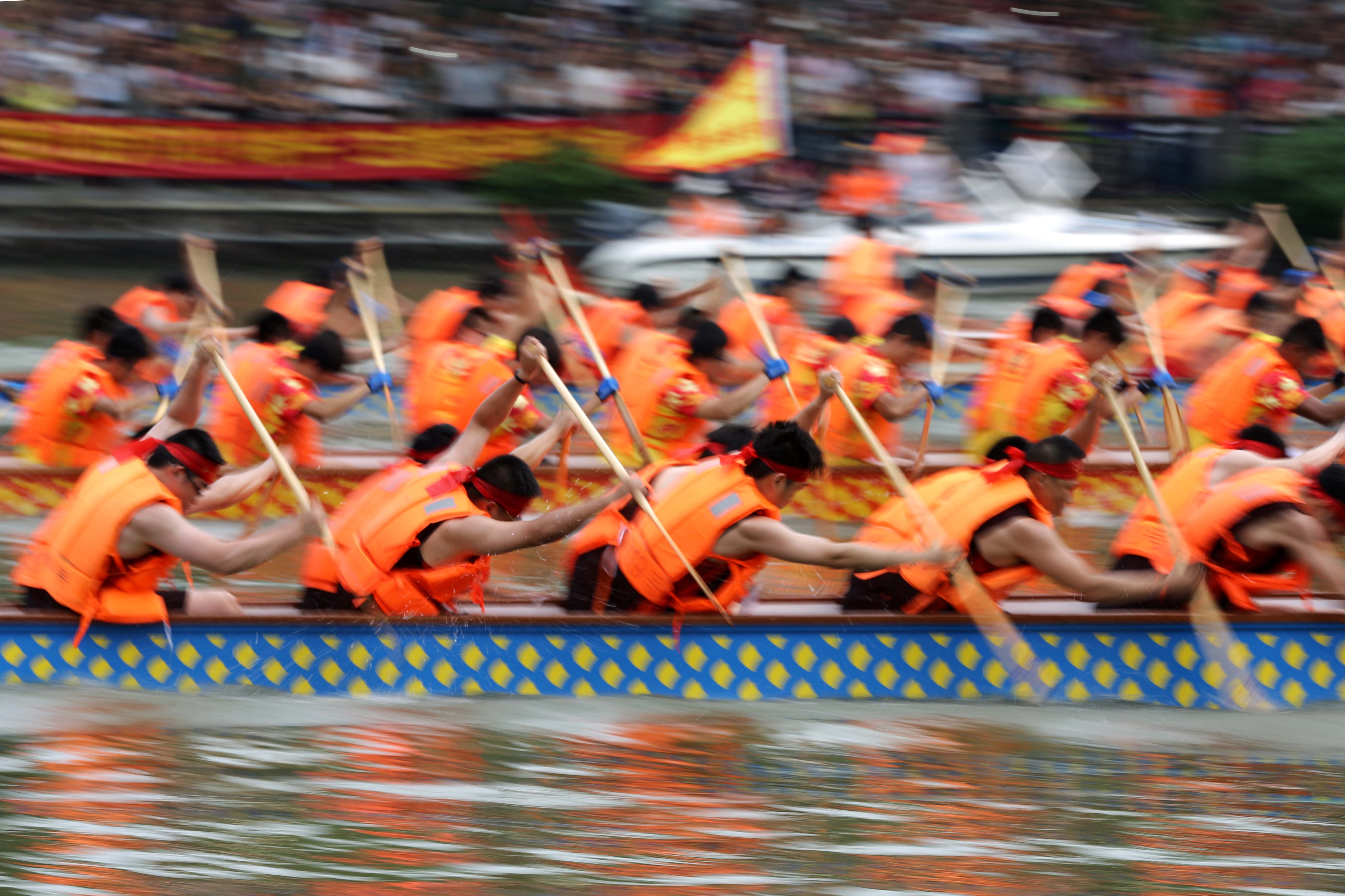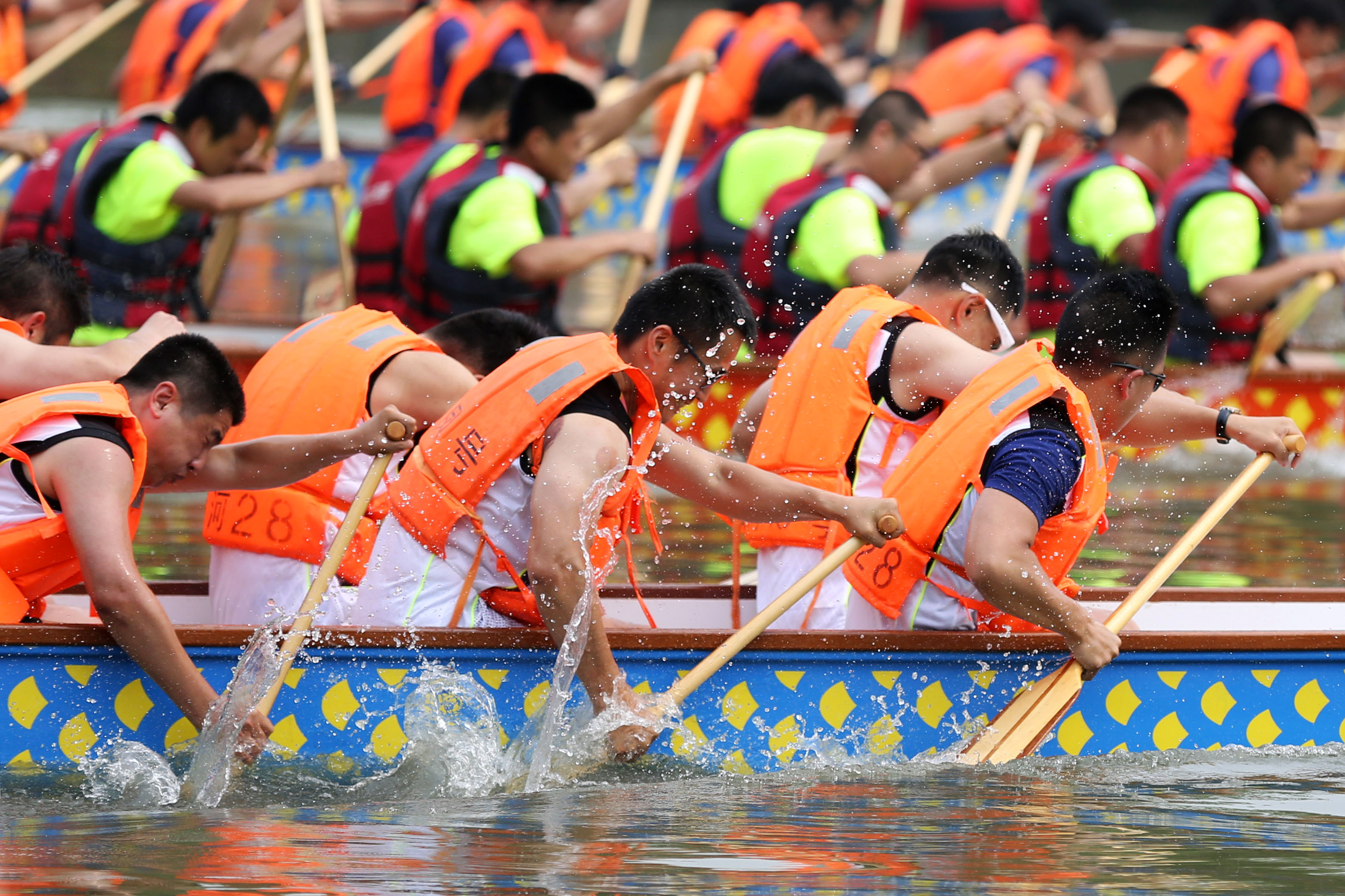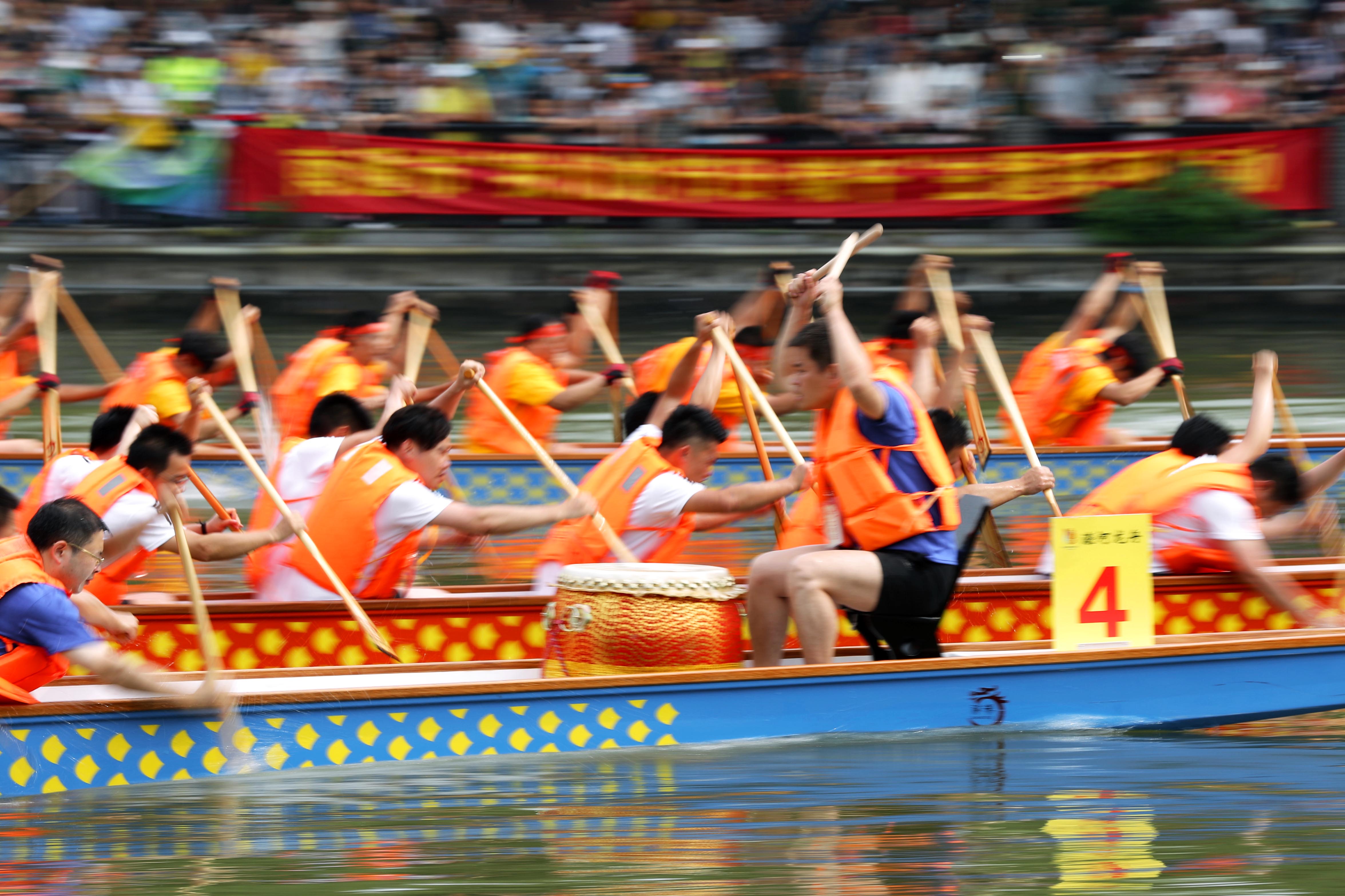 图片简介:每年农历五月初五是中国传统节日端午节,在这一天除了吃粽子、喝雄黄酒、挂菖蒲、戴香包等习俗外,不少地方还会举办热闹非凡的龙舟大赛。为了倡导全民健身运动,弘扬江海民俗文化,2015年6月20日,南通市第二届濠河龙舟大赛火热开战。随着开赛的枪声响起,龙舟伴随着阵阵有节奏的鼓声冲出起点。选手们手握划桨,有节奏地快速划破水面,劈波斩浪,相竞争先。队旗迎风飘扬,河面上水花飞舞,包裹着龙舟如离弦之箭般一往无前。岸上的群众围了里三层外三层,发出阵阵欢呼和呐喊。一时间,濠河上鼓声、加油声此起彼伏,不绝于耳,壮观的场面震撼人心。