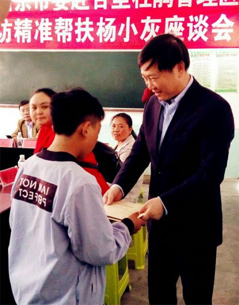 杨小灰是毕节金坡乡中学的一名初三学生,父亲因病失去劳动力,母亲离家出走,在市委会领导集体的动员带领和参与支持下,致公党南京市鼓楼总支从2012年起一对一帮助他,生活上给予帮助,精神上给予关爱,至今也已经坚持整整七个年头了。