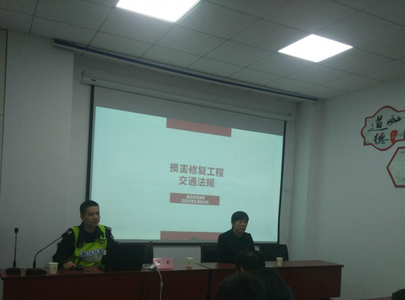 4月25日下午,致公党连云港市连云总支与连云区司法局、市交巡警连云大队联合走进连云区墟沟街道西苑侨务社区,给社区的矫正人员举办一场交通法规暨急救知识讲座。讲座由致公党连云港市委会副主委、连云总支主委、区司法局副局长周伦荣主持。