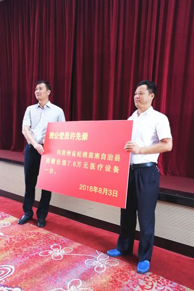 许先崇:响应国家倡导的精准扶贫号召,坚持精准医疗扶贫,帮助贫困地区提升基层医疗诊疗水平,是我们江苏同人医疗电子科技公司多年来一贯坚持的扶贫事业。这次捐赠,我特地选取了妇科低频脉冲综合治疗仪予以捐赠。这主要是因为,多年参与慈善捐赠的实践使我懂得,捐赠出去的医疗仪器必须满足“适合基层医疗需求,操作简单,实用性高、一机多功能”等特点。结合贵州当地医疗卫生情况以及当地妇女的实际医卫困难,妇科低频脉冲综合治疗仪具有乳腺病治疗,盆腔炎治疗,产后康复理疗,妇科病治疗等功能与一体,非常适合贫困地区基层卫生机构。这台仪器,承载的是全体徐州致公党员为精准扶贫事业做出努力与贡献的愿望,也是我个人践行入党时“致力为公,侨海报国”承诺的表现。我们同时为仪器提供完善的售后服务,保证仪器正常开展工作,把徐州全体致公党员的爱心落到实处。