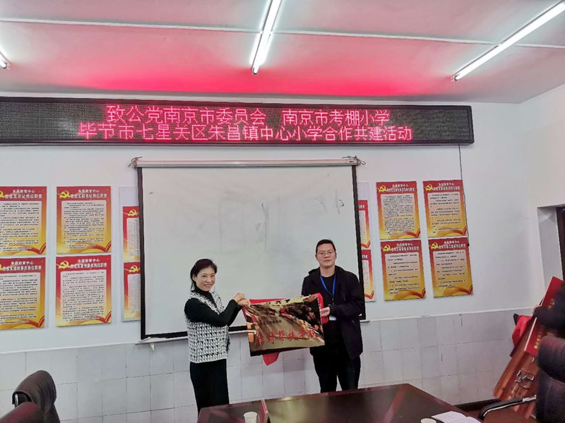 经市委会与南京及毕节有关部门的协调沟通,促成了南京市考棚小学与毕节市七星关区朱昌镇中心小学结对共建。此次活动考棚小学向朱昌镇中心小学捐赠了8000元教育基金、1300本图书成立“致公图书角”,“明道书院”毕节分院揭牌成立,两校开通启动了线上教学,高淳支部用特殊党费的形式捐款30000元帮助成立科创实践基地并启动科创项目。